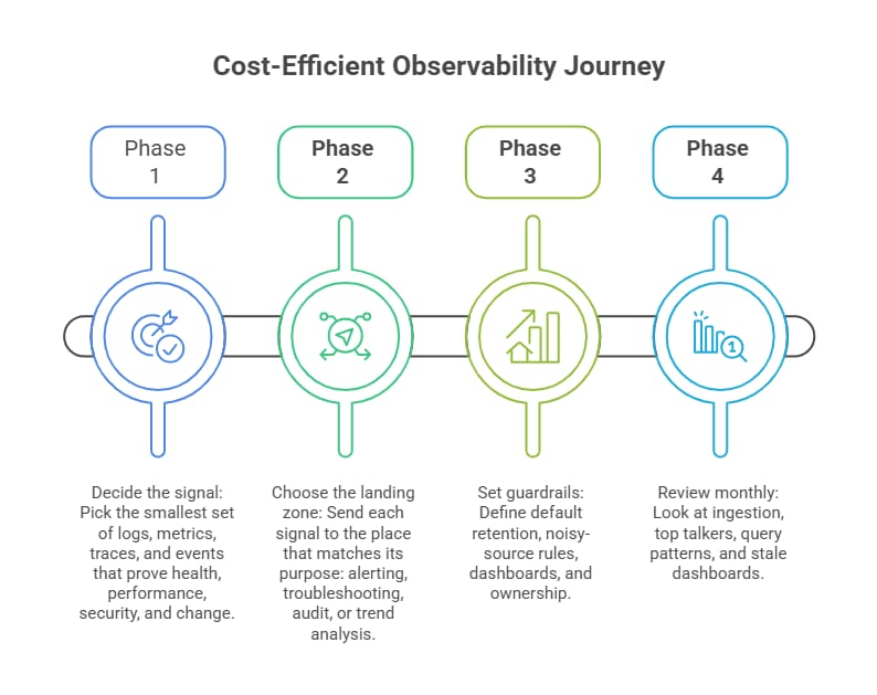 Cost-efficient observability is not about being cheap. It is about being intentional. You protect response quality, improve troubleshooting speed, reduce storage sprawl, and build trust with finance and leadership because your telemetry estate has a purpose. That is the value proposition: clearer signals, better operator focus, and fewer budget surprises.
